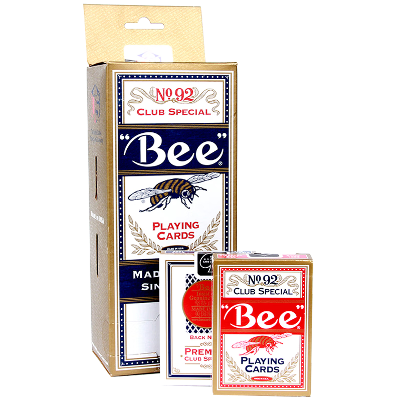 BEE(蜜蜂牌)有一部分舞臺魔術(shù)采用這一類(lèi)的牌,像美國的魔術(shù)師,有魔術(shù)校長(cháng)之稱(chēng)的杰夫.邁布萊德也鐘愛(ài)著(zhù)一類(lèi)的牌。 蜜蜂牌撲克使用了獨一無(wú)二、無(wú)與倫比的紙漿制成,由美國紙牌公司于1892年創(chuàng )建品牌。蜜蜂牌撲克優(yōu)于美國紙牌公司的其他品牌,是用精選混合原材料制作。